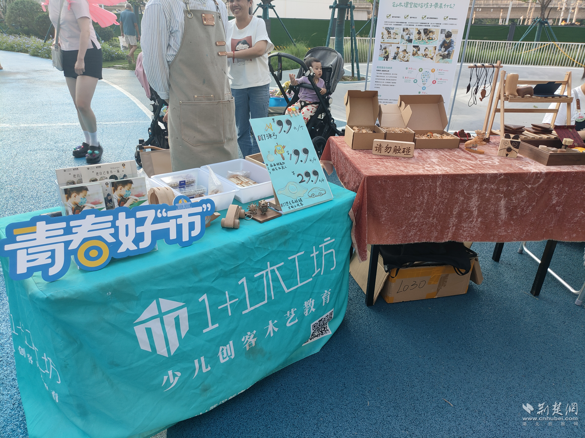 另一頭的創(chuàng)意市集同樣人氣爆棚,來(lái)自“鄰樂社”“鄰犀社”的青年們各顯神通。