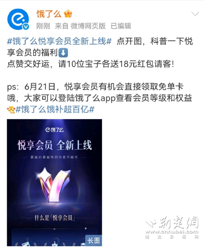 荊楚網(wǎng)(湖北日報(bào)網(wǎng))訊(通訊員 易曄)在“外賣大戰(zhàn)”持續(xù)升溫的背景下,餓了么近日繼續(xù)發(fā)力用戶側(cè)體驗(yàn)升級。6月18日,餓了么官宣已在全國上線“悅享會(huì)員”,推出多項(xiàng)貼心服務(wù)和專屬權(quán)益,主打讓用戶“用得多省得多”。