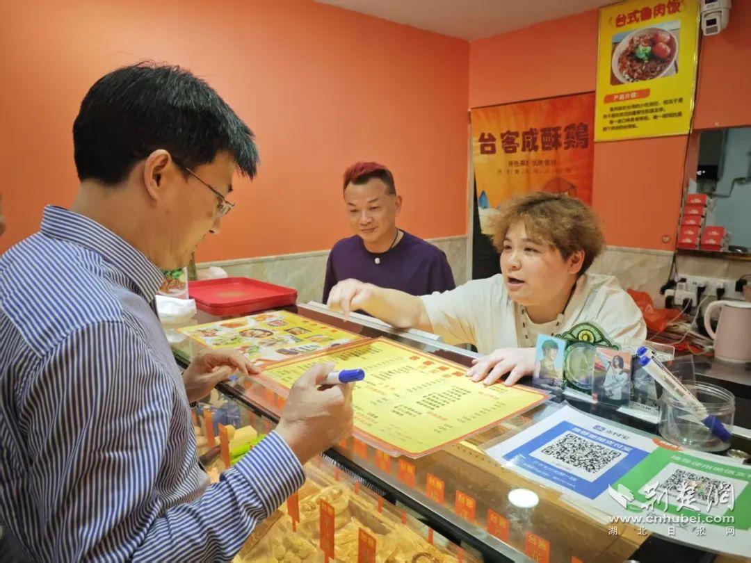 武漢市北湖正街的“臺客咸酥雞”店里,油鍋沸騰的滋滋聲與顧客的談笑聲交織。店主潘佳輝右手抖動裝著一份雞塊的炸籃,左手晃了一下調(diào)料瓶,嫻熟的操作,讓人想走進操作間也試一試。前臺潘佳輝的妻子李琦雯正在耐心的給新客戶介紹套餐菜品,“這是‘四大天王’,咸酥雞、甜不辣、紅豆年糕等特色產(chǎn)品都有,一家人吃,可以點這個熱賣套餐,這樣更劃算。”