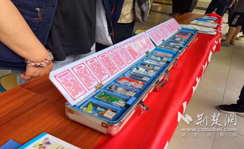 在長港路地鐵站出口,還可以看到江漢區(qū)司法局和禁毒部門組織陳列展示的“奶茶粉”“跳跳糖”等30種新型偽裝毒品。戒毒民警結(jié)合這些新型毒品的特點(diǎn),對來往的行人深入講解其隱蔽性、危害性以及防范要點(diǎn),著重提醒市民在出入娛樂場所時務(wù)必提高警惕。