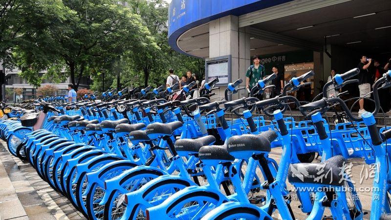 長港路地鐵站共享單車。通訊員供圖
