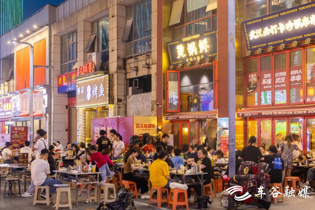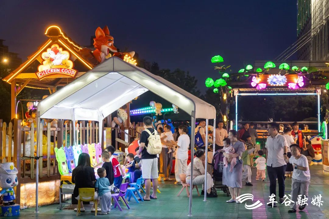 網(wǎng)紅集裝箱集市上,人們?nèi)宄扇?,手捧奶茶,聊天、散步,打工人迎來一天中最松弛的時刻。不遠處,兒童樂園傳來陣陣歡笑,快樂氣球屋、小雞快跑是孩子們的最愛。萬達金街上,烤串、麻辣燙飄香,耳邊傳來“走,去擼串!”“快來,吃油燜大蝦!”