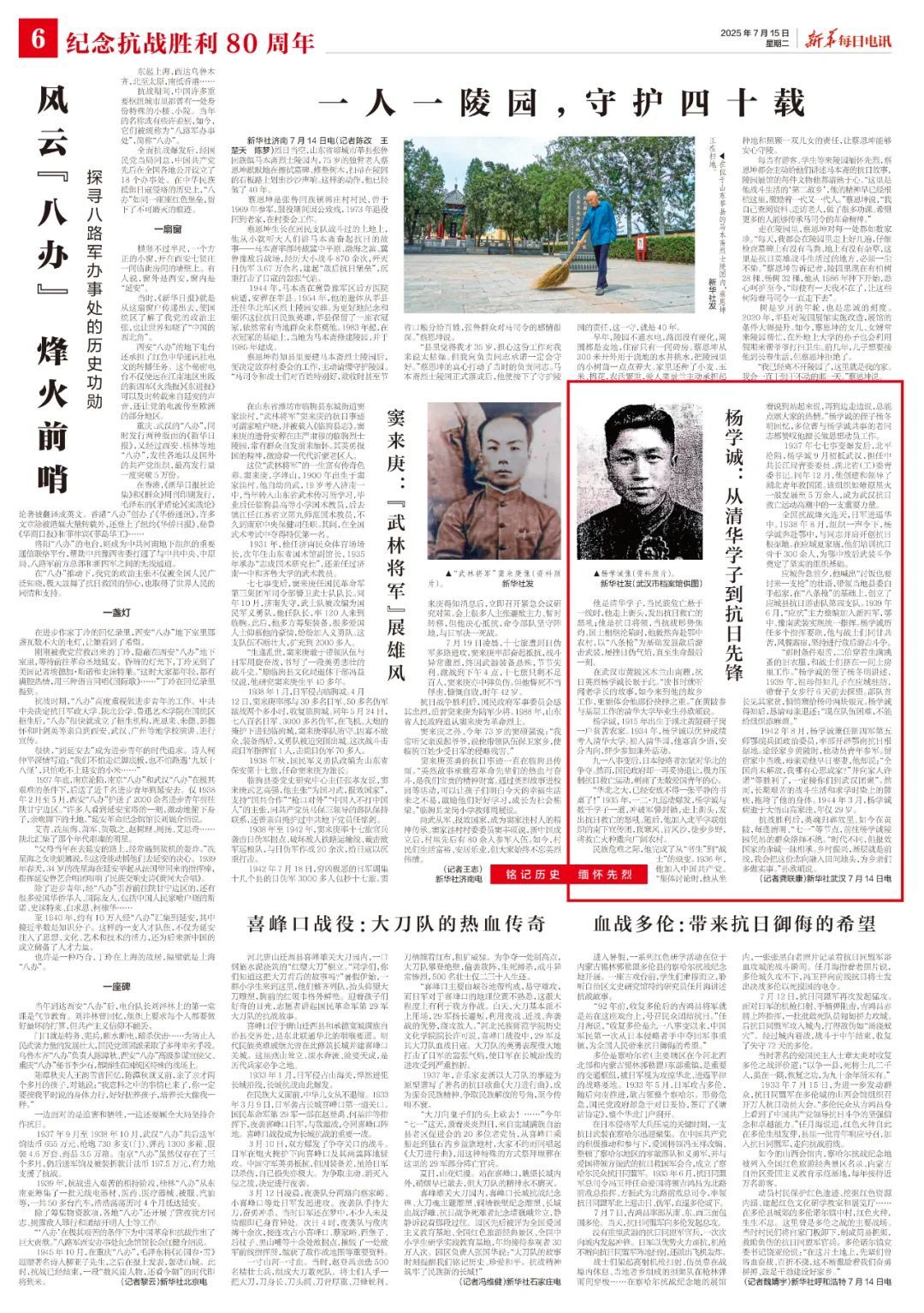 抗戰(zhàn)勝利后,英魂歸葬故里。如今在黃陂,每逢清明、“七一”等節(jié)點(diǎn),前往楊學(xué)誠陵園憑吊的群眾絡(luò)繹不絕。“時代不同,但報效國家的赤誠一脈相承。鄉(xiāng)村振興,基層就是前線,我會把這份志向融入田間地頭,為鄉(xiāng)親們多做實(shí)事?!睂O欣頔說。