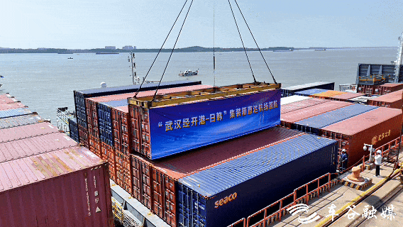“此次開通的日韓航線采用江海直達船型,從武漢經(jīng)開港出發(fā)后直達日韓。”武漢經(jīng)開港口有限公司董事、副總經(jīng)理王遠輝介紹,此前,由于沒有外貿(mào)直達航線,武漢經(jīng)開區(qū)的外貿(mào)出口集裝箱,需先從經(jīng)開港短途駁運至陽邏港,再中轉(zhuǎn)至太倉、上海,進行報關(guān)、轉(zhuǎn)關(guān)、清關(guān)等手續(xù),程序煩瑣、耗時較長。航線開通后,可從武漢經(jīng)開區(qū)直達韓國釜山、日本門司、大阪、名古屋等港口,較傳統(tǒng)中轉(zhuǎn)模式節(jié)省3天至5天運輸時間,單箱物流成本降低約1000元。
