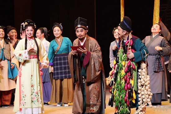 演出現(xiàn)場,現(xiàn)場觀眾的情緒隨著劇情的推進而起伏跌宕。戲中臺詞頻繁出現(xiàn)的小南街、魚面、挑花、五祖寺、紫云山茶等極具地方特色的文化元素令人拍案叫絕;“將么解”“嚼爛飯”等方言俚語穿插在對白唱詞中,引得觀眾捧腹大笑。當(dāng)《梅城煙雨》的最后一個音符落下,全場觀眾的掌聲隨之響起。演出結(jié)束后,觀眾仍沉浸在藝術(shù)的余韻中,紛紛表示這不僅是一場視聽盛宴,更是一次心靈的洗禮。