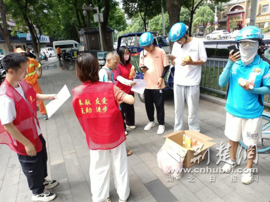 “師傅,喝瓶冰水,記得防暑啊。”活動現(xiàn)場,紅馬甲志愿者將冰鎮(zhèn)礦泉水、藿香正氣液、降溫貼等防暑用品一一遞到外賣員、快遞小哥和環(huán)衛(wèi)工人手中。為了照顧騎手等餐時間短、流動頻繁的特點(diǎn),社區(qū)提前將綠豆湯和糕點(diǎn)送至暖新驛站,實(shí)現(xiàn)“人找貨”變“貨找人”,當(dāng)天共為50多位戶外勞動者送上了這份貼心清涼。