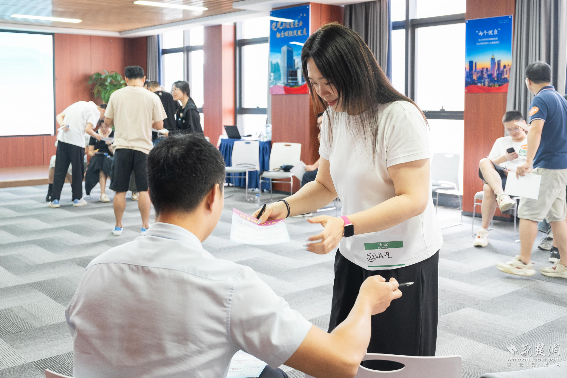 荊楚網(wǎng)(湖北日報網(wǎng))訊(記者 何婧 通訊員 顧蝶)七夕將至,浪漫升溫。8月27日下午,武漢中心書城14樓多功能活動室化身“心動空間”,一場別開生面的青年交友活動在此熱鬧登場?;顒佑山瓭h區(qū)唐家墩街汽運社區(qū)聯(lián)合市、區(qū)團(tuán)委,攜手“開飯喜劇”共同舉辦,吸引了30余位來自金融、科技、文化等領(lǐng)域的單身青年參與。