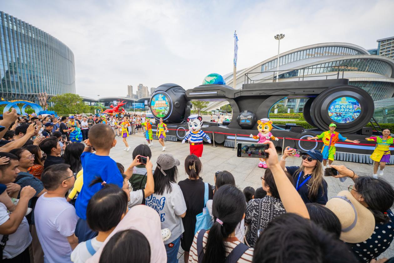 小黃人、卡通虎都來(lái)了。9月12日,在室外展區(qū),北京環(huán)球影城特別版狂歡嘉年華掀起一股熱潮。小黃人斯圖爾特、凱文、穿靴子的貓、朱利安國(guó)王身穿盛裝,閃亮登場(chǎng)。演員們會(huì)向現(xiàn)場(chǎng)小伙伴發(fā)出熱舞邀請(qǐng),還有教學(xué)。9月13日,長(zhǎng)隆集團(tuán)領(lǐng)銜出場(chǎng)的“歡樂(lè)大使”卡通虎卡卡、琦琦與粉小琦盛裝亮相,帶來(lái)了一場(chǎng)歡樂(lè)派對(duì),還有外籍演員熱舞?,F(xiàn)場(chǎng)觀眾直呼:“好熱情”“好活潑”!