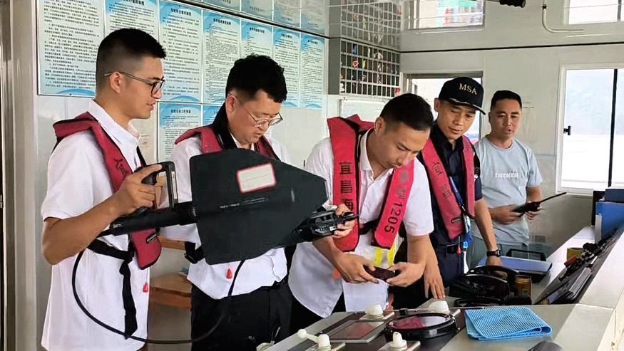 此外,無(wú)線電技術(shù)人員攜帶專(zhuān)業(yè)便攜移動(dòng)監(jiān)測(cè)設(shè)備,對(duì)臨江坪待閘錨地區(qū)域開(kāi)展水上移動(dòng)電磁環(huán)境監(jiān)測(cè);檢查船舶甚高頻電臺(tái)(VHF)等無(wú)線電設(shè)備,核查設(shè)備是否取得型號(hào)核準(zhǔn),檢測(cè)設(shè)備發(fā)射的無(wú)線電頻率、帶寬等技術(shù)參數(shù),排查通信安全隱患。
