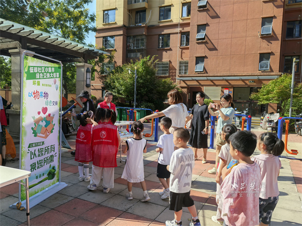 曾經(jīng)用于疫情防控的核酸亭也煥發(fā)新生,貼上新膜、掛上“堤”碳小屋招牌后,這里成了社區(qū)共享空間。工具架上擺放著扳手、螺絲刀等共享工具,展示柜里陳列著奶粉罐改造的多肉花盆、舊牛仔褲縫制的時(shí)尚挎包。不少居民自豪地說:“在我們這兒,垃圾能變寶藏!”
