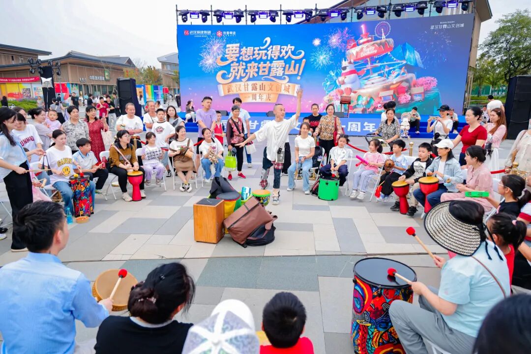 廣場正中,幾十名鼓手圍坐成圈,使用非洲鼓,在引導(dǎo)師帶領(lǐng)下共同演奏出悅耳的音樂。不少游客紛紛加入“百人手鼓派對”活動,學(xué)習(xí)非洲鼓演奏,現(xiàn)場氣氛熱烈。