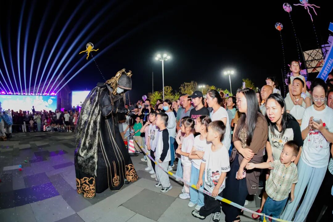 伴隨著開場音樂,高2.4米的白袍巫師哈瑞、黑袍巫師、精靈法師瑞秋等角色踩著高蹺驚艷登場,只見黑袍巫師從袖中掏出匕首,轉(zhuǎn)瞬間匕首燃起火焰,魔法師們與觀眾互動握手,把彩帶撒向人群,將現(xiàn)場氣氛推向高潮。10月1日,黃陂區(qū)甘露山文創(chuàng)城國際街頭藝術(shù)節(jié)正式開幕,吸引近5萬名游客前來打卡。