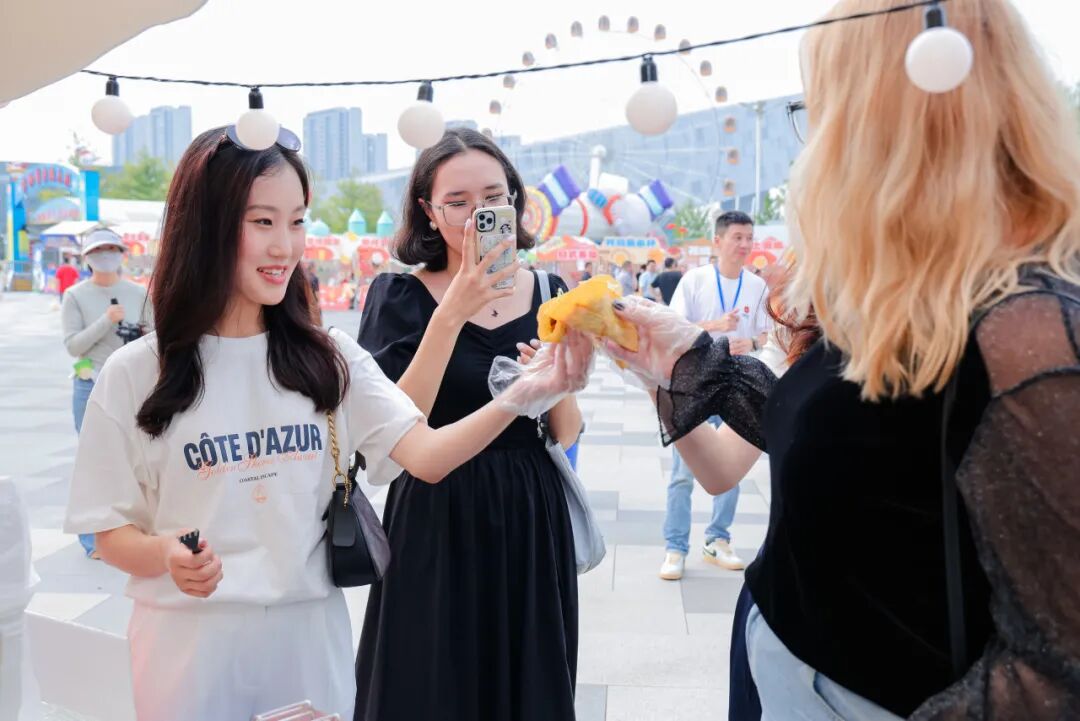 在廣場四周,美食市集也拉開帷幕,40余家全國人氣品牌及黃陂本土特色攤位紛紛亮出他們的“拿手菜”。黎黃陂路傳奇牛排店帶來厚切肉眼牛排;武漢本土精釀品牌“水豚釀造”攜手“糖豆咖啡”,提供手工精釀與現(xiàn)磨意式咖啡。泰式奶茶、手打檸檬茶、爆蛋吐司、辣炒年糕等亞洲街頭小吃,讓游客大飽口福。值得一提的是,來自杭州的原創(chuàng)毛絨品牌“雨過山”首次登陸武漢,以其治愈系設(shè)計成為打卡熱點。