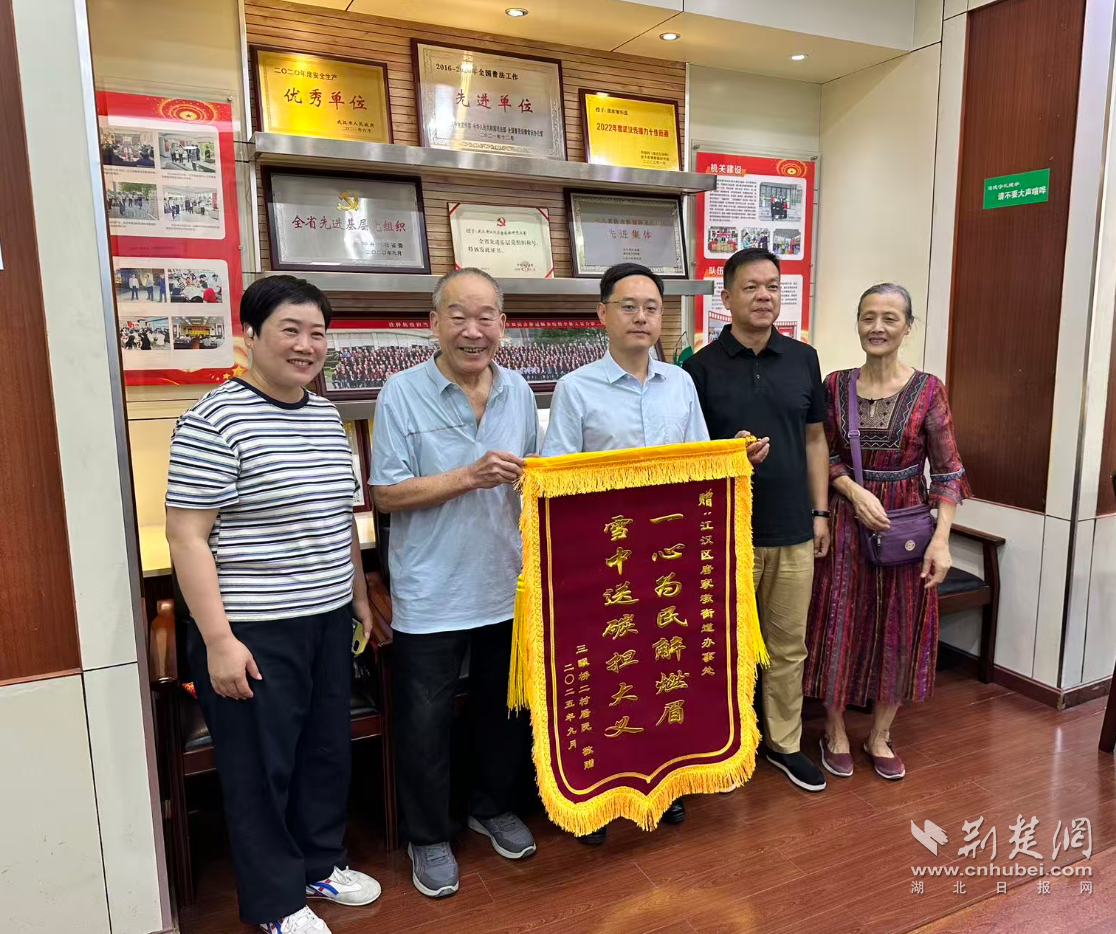 10月10日上午,武漢三眼橋二村52-54號的居民代表手捧一面寫有“一心為民解燃眉,雪中送炭擔(dān)大義”的錦旗,走進江漢區(qū)唐家墩街道辦事處,用最樸實的方式表達他們的感激之情。