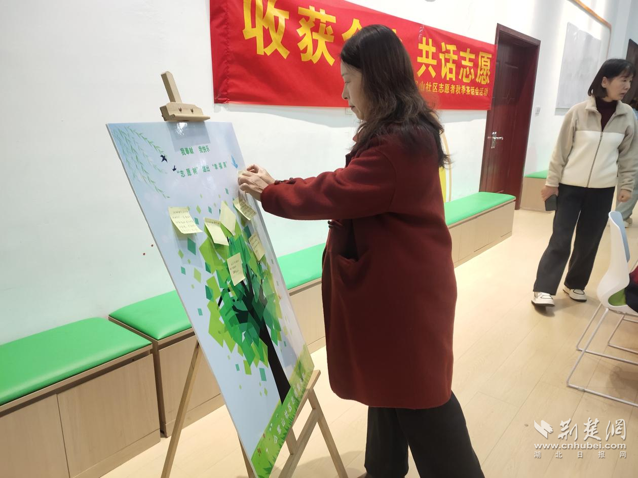 志愿者將寫有服務(wù)記錄的便利貼貼在展板上。通訊員供圖
