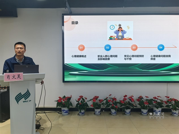 授課現(xiàn)場,醫(yī)院副主任醫(yī)師肖文昊圍繞四大核心板塊展開講解。在“心理健康概述”部分,他清晰界定心理健康的定義與標準,重點剖析壓力管理、抗挫能力、情緒調(diào)節(jié)等關(guān)鍵要素,讓員工直觀理解心理健康對工作效率與生活質(zhì)量的影響;針對職業(yè)人群常見的職業(yè)緊張、倦怠、焦慮、抑郁等問題,他深入分析“心理支持缺失”“不良組織文化”“成長機會不足”等誘因,助力員工精準識別自身潛在心理困擾。