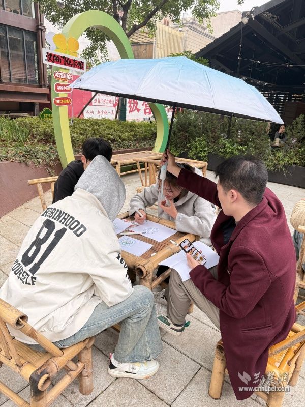 在創(chuàng)意互動環(huán)節(jié),嘉賓們以熱干面、豆皮、糊湯粉三類武漢經(jīng)典“過早”美食為主題進行分組,充分發(fā)揮創(chuàng)意與想象力,合作創(chuàng)作心目中的美食形象。在輕松愉悅的協(xié)作過程中,青年們迅速打破隔閡,拉近了彼此距離。