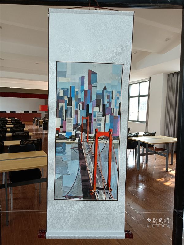 在青少年作品展示區(qū),一幅幅將起義門、鸚鵡洲長江大橋等近現(xiàn)代建筑巧妙融入當(dāng)代環(huán)境的圖畫,呈現(xiàn)出極具想象力的構(gòu)圖,生動(dòng)詮釋了歷史與現(xiàn)代的完美交融。這些作品營造出一種歷史與現(xiàn)代在空間上相互交織、彼此呼應(yīng)的奇妙氛圍,使觀者仿佛穿越時(shí)空,深刻感受到著武漢的社會(huì)變遷。