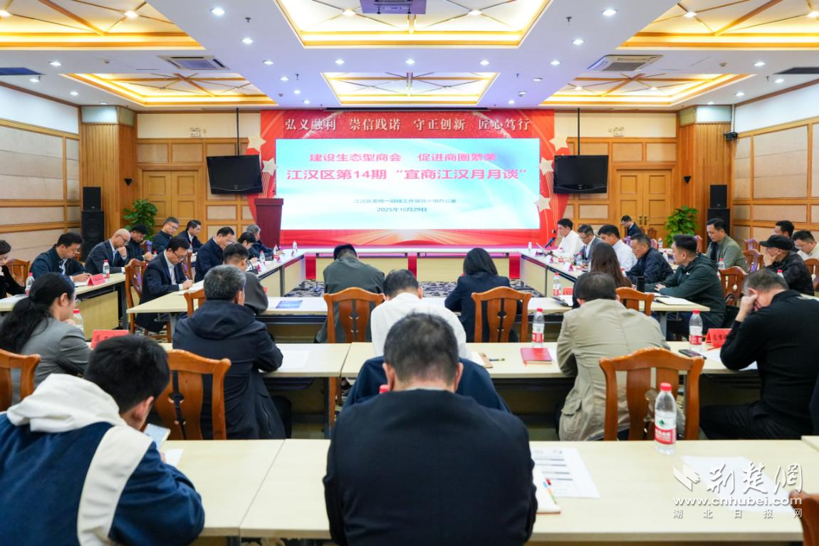 10月29日,江漢區(qū)第14期“宜商江漢月月談”聚焦“建設(shè)生態(tài)型商會,促進商圈繁榮”主題,邀請區(qū)內(nèi)重點商會、商業(yè)企業(yè)與相關(guān)部門代表面對面交流,圍繞營商環(huán)境、政策支持、基礎(chǔ)設(shè)施等關(guān)鍵議題,現(xiàn)場收集意見建議,實現(xiàn)問題在一線回應(yīng)、共識在一線凝聚、行動在一線落實。