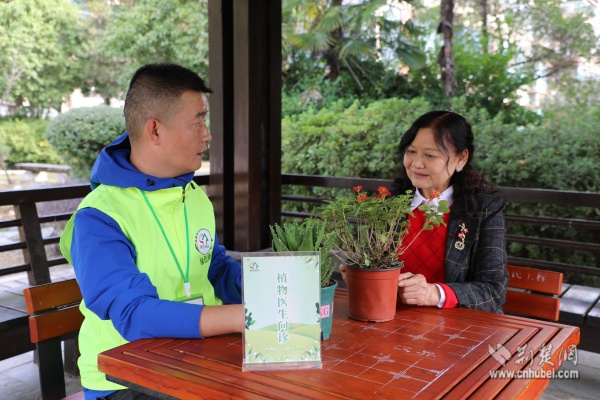 江漢區(qū)民權(quán)街道打銅社區(qū)園藝師辛高爐分享植物養(yǎng)護經(jīng)驗。 通訊員供圖