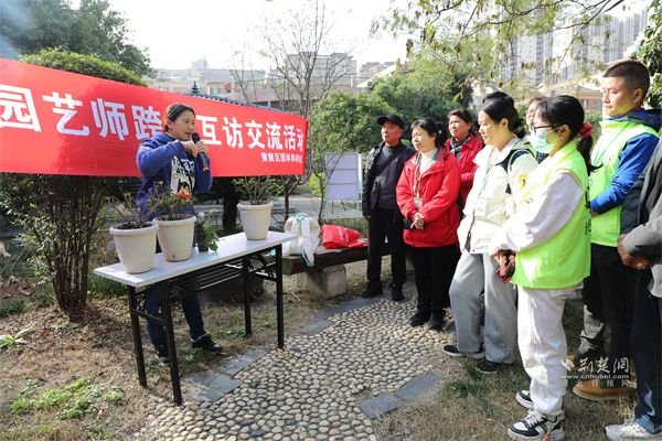 當(dāng)天,社區(qū)園藝師跨區(qū)互訪交流活動(dòng)在沙港社區(qū)舉行,來自全市各區(qū)的28名社區(qū)園藝師與沙港社區(qū)志愿者,通過實(shí)地探訪、動(dòng)手實(shí)操、互動(dòng)分享,圍繞社區(qū)花墻打造、秋冬季病蟲害防治等話題展開深度交流,在互學(xué)互鑒中共同提升園藝服務(wù)水平。