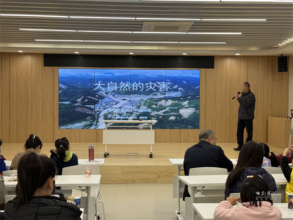 活動(dòng)特邀中國(guó)地質(zhì)大學(xué)(武漢)國(guó)家地理信息系統(tǒng)工程技術(shù)研究中心副研究員容東林授課,以專業(yè)講解、實(shí)驗(yàn)演示、互動(dòng)答疑相結(jié)合的方式,打造了一場(chǎng)通俗易懂、寓教于樂的知識(shí)探索之旅。容東林憑借專業(yè)知識(shí)與實(shí)踐經(jīng)驗(yàn),結(jié)合案例視頻和圖片,生動(dòng)介紹泥石流、滑坡、火山、地震等常見地質(zhì)災(zāi)害的類型、形成原理及危害,重點(diǎn)拆解地震避險(xiǎn)、泥石流躲避、臺(tái)風(fēng)出行禁忌等實(shí)用防災(zāi)知識(shí),用真實(shí)案例讓居民深刻認(rèn)識(shí)到掌握防災(zāi)技能的重要性。