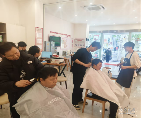12月9日,在黃鶴樓街道新就業(yè)群體服務(wù)驛站、黃鶴先“蜂”新時代文明實踐點組織的義剪活動現(xiàn)場,高峰的手法已沉穩(wěn)許多。他正專注地為一位同行騎手修剪頭發(fā),動作細(xì)致、眼神認(rèn)真?!暗燃夹g(shù)再熟練些,我想開一家屬于自己的理發(fā)店?!彼f道。那把曾經(jīng)令他忐忑的剪刀,如今正一寸寸剪出一條從奔跑到扎根、從生計到夢想的轉(zhuǎn)型之路。