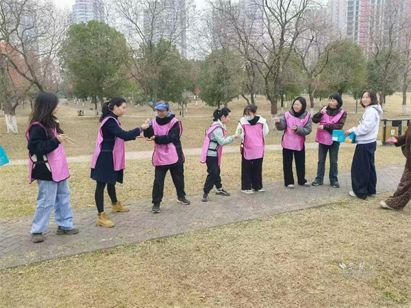 中午時分,大家齊聚武昌江灘?;顒右潦迹娙藝蓤A圈,在主持人引導下,伴著歡快的音樂進行破冰互動。隨后,眾人以抽簽的方式劃分為三組,三項趣味游戲輪番上演。