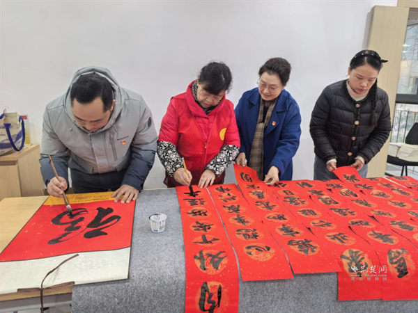 流動(dòng)黨員寫(xiě)福、寫(xiě)對(duì)聯(lián)。 通訊員供圖