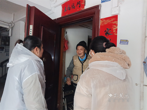 降雪路滑,糧道街道各社區(qū)心系轄區(qū)內(nèi)空巢老人、孤寡老人和殘疾人等特殊群體家庭,迅速組織網(wǎng)格員開展“敲門行動”?;▓@山社區(qū)網(wǎng)格員在上門看望獨居老人途中,偶遇特扶對象鄧奶奶正小心翼翼地在雪中前行?!班嚹棠?,您慢點走,這雪剛下,路面有點滑,我扶著您。”網(wǎng)格員立即上前攙扶,邁著穩(wěn)健的步伐將其護送回家。進屋后,她反復(fù)叮囑老人:“雪天盡量減少外出,若有采購需求隨時聯(lián)系我們代買,生活上遇到任何困難,第一時間向社區(qū)反映?!币痪渚涠?,一聲聲關(guān)懷,讓寒冷的雪天暖意融融。