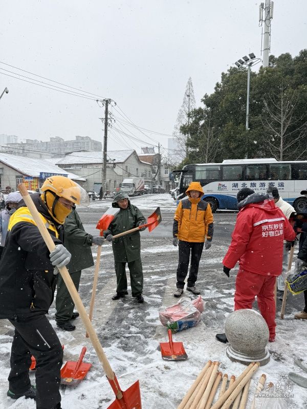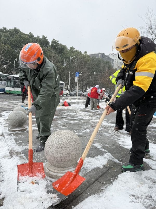 值得一提的是,這群外賣騎手不僅是城市的“奔跑者”,也是冰雪中的“志愿紅”。在近日的鏟雪除冰行動(dòng)中,他們主動(dòng)放棄休息時(shí)間,響應(yīng)街道號(hào)召,自發(fā)拿起鐵鍬、掃帚,深入背街小巷清理積雪。寒風(fēng)凜冽,他們不顧雙手凍得通紅,或彎腰揮鍬鏟除積冰,或俯身清掃殘雪碎冰,還不時(shí)提醒過(guò)往居民“路滑慢走”,用實(shí)際行動(dòng)為轄區(qū)治理注入溫暖力量。