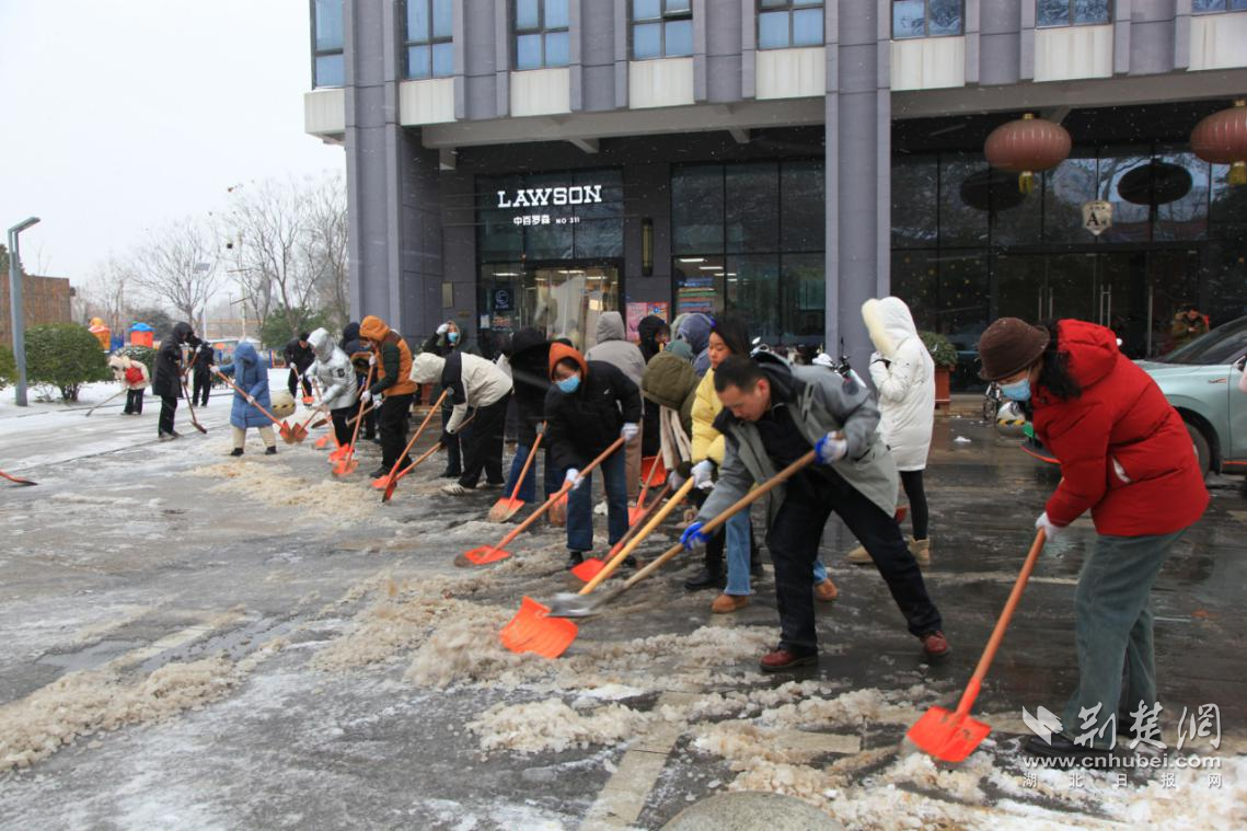 在黃陂區(qū)灄口、前川街道,街道綜合執(zhí)法中心通過“線上通知+線下走訪”的方式,強化沿街商戶“門前三包”責任制落實;在新洲區(qū)摩爾城、幸福時代等人員密集的商圈周邊道路,摩爾城商戶、周邊居民都在區(qū)城管執(zhí)法局清雪工作人員的感染下,自覺加入掃雪隊伍;在東湖風景區(qū),執(zhí)法人員向沿街商戶發(fā)放《致全體武漢市民的掃雪除冰倡議書》,沿街商戶紛紛響應“門前三包”責任,拿起工具主動清理門前積雪,形成了“各掃門前雪,共護出行路”的自覺氛圍;在蔡甸區(qū),蔡甸自來水公司自發(fā)組織干部職工,在公園路—樹藩大街包保路段開展鏟雪除冰工作,及時消除道路通行隱患。