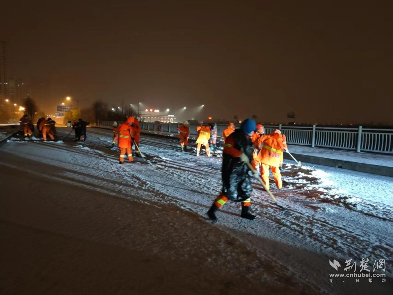 荊楚網(wǎng)(湖北日?qǐng)?bào)網(wǎng))訊(通訊員姜鵬)1月20日凌晨,武漢市迎來(lái)今冬首場(chǎng)降雪。為確保城市道路暢通,武漢經(jīng)開區(qū)軍山街道的環(huán)衛(wèi)工人提前上崗,在嚴(yán)寒中開展掃雪除冰作業(yè),并在交通高峰時(shí)段主動(dòng)幫助受困車輛,三小時(shí)內(nèi)徒手助推近40輛汽車脫困,成為風(fēng)雪中最暖心的“橙色力量”。