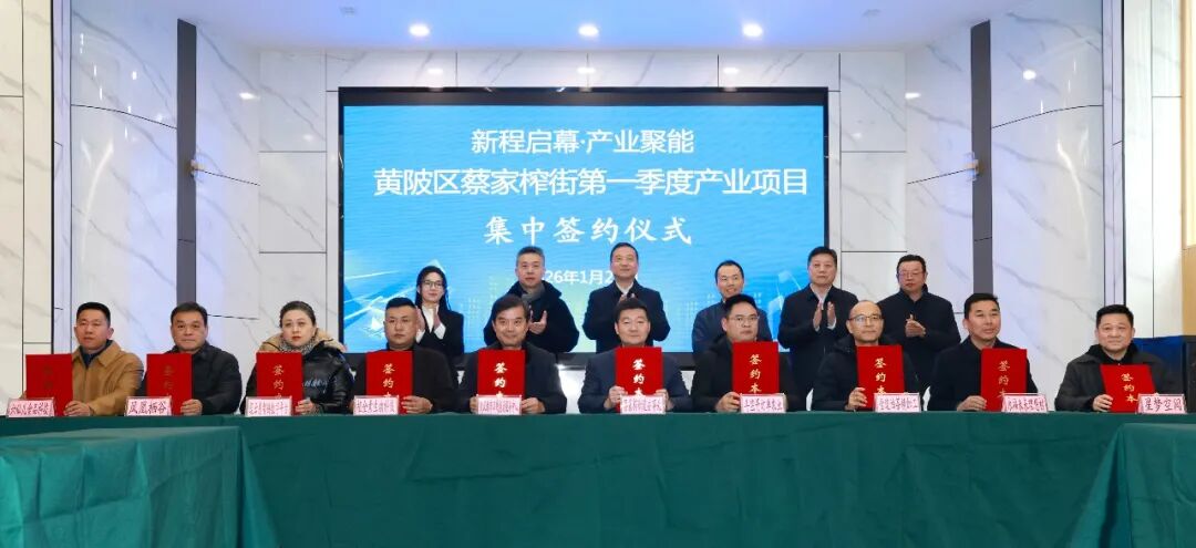 1月21日下午,黃陂區(qū)蔡家榨街道舉辦2026年第一季度“新程啟幕·產業(yè)聚能”產業(yè)項目集中簽約儀式?,F場9個優(yōu)質項目簽約,涵蓋城市更新、鄉(xiāng)村振興、現代農業(yè)、科技創(chuàng)新等六大領域,總投資額6.5億元。