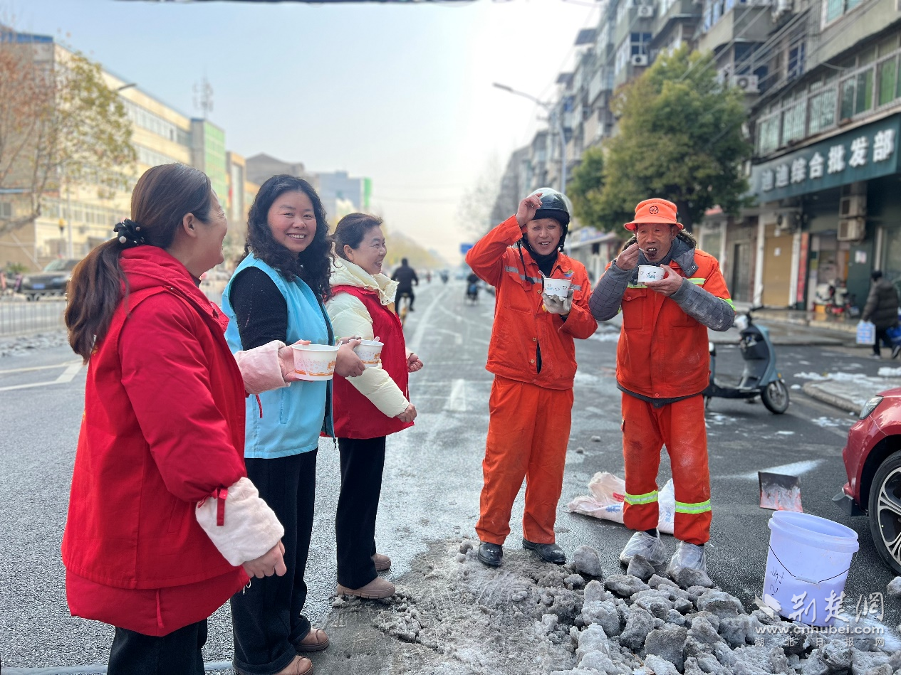 荊楚網(wǎng)(湖北日?qǐng)?bào)網(wǎng))訊(通訊員 吳悠琪)1月23日上午,武漢經(jīng)開區(qū)紗帽街道薇湖路社區(qū)工會(huì)愛心驛站開展“品一碗暖心臘八粥,情暖環(huán)衛(wèi)工”冬季送溫暖活動(dòng)。工作人員提前備好食材,經(jīng)過數(shù)小時(shí)慢火熬煮,將軟糯香甜、營養(yǎng)豐富的臘八粥,逐一送到轄區(qū)各路段的環(huán)衛(wèi)工人手中,為寒冬里的一線勞動(dòng)者送上社區(qū)與工會(huì)熱氣騰騰的關(guān)懷。