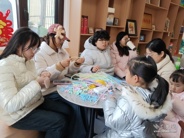外場體驗區(qū)更是精彩紛呈。在定制春聯(lián)區(qū),95歲高齡的社區(qū)居民黃勁勇老先生帶領(lǐng)首義書畫協(xié)會的老師們現(xiàn)場揮毫,筆走龍蛇。一副副對聯(lián)、一張張福字,承載著真摯祝福與新年期盼,吸引居民有序排隊領(lǐng)取。親子手工區(qū)、便民服務(wù)角與特色年貨市集同樣人氣高漲,居民在參與中感受文化、享受服務(wù)、樂購年貨。