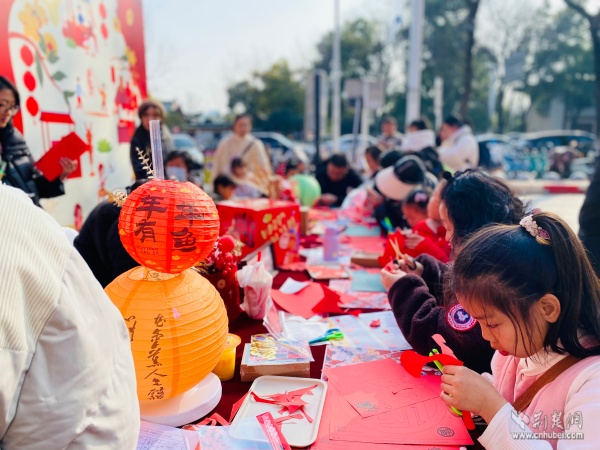 現(xiàn)場(chǎng)節(jié)日氛圍濃厚,文化氣息撲面而來(lái)。居民們不僅可以便捷選購(gòu)年貨,還能免費(fèi)參與多項(xiàng)文化體驗(yàn)活動(dòng)。書法老師帶領(lǐng)孩子們揮毫潑墨,一副副春聯(lián)和福字傳遞祝福;黃鶴書房設(shè)置的投壺游戲區(qū),讓市民在趣味中重溫傳統(tǒng)年俗;非遺手作課堂內(nèi),搖錢樹制作、剪窗花等技藝吸引眾人親手嘗試,近距離感受非遺魅力。市集匯聚30余家品牌商戶,商品涵蓋生鮮食品、休閑零食、健康禮品、文創(chuàng)產(chǎn)品等,充分滿足了居民“一站式”購(gòu)齊年貨的多元需求,真正實(shí)現(xiàn)便民與惠民相統(tǒng)一。