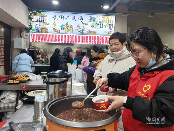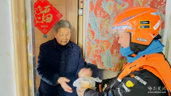 溫暖派送覆蓋多元群體。在戶外勞動(dòng)者驛站,環(huán)衛(wèi)工人、快遞外賣騎手從志愿者手中接過熱粥;社區(qū)還鏈接武漢市第三醫(yī)院資源,為戶外工作者提供健康咨詢。幾位外賣騎手主動(dòng)化身“公益騎手”,與黨員志愿者一同將暖心粥品送至“鶴耋安”高齡獨(dú)居老人家中。黨員志愿者還走訪了周邊商戶、殘疾人家庭及退役軍人家屬,并在社區(qū)設(shè)點(diǎn)邀請(qǐng)居民共享溫情。一碗粥,沿著黨員和志愿者的溫暖足跡,流入社區(qū)每個(gè)角落。