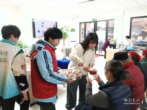 西廠口社區(qū)頤養(yǎng)中心為老人送上臘八粥。 通訊員供圖