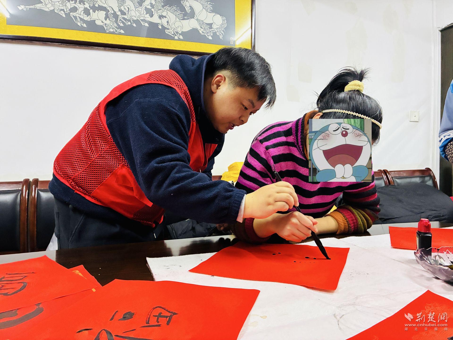 活動(dòng)現(xiàn)場(chǎng)還設(shè)置了春聯(lián)書(shū)寫(xiě)互動(dòng)區(qū)。書(shū)法老師從握筆姿勢(shì)、用筆力度講起,耐心示范基礎(chǔ)筆法,并根據(jù)每個(gè)人的情況進(jìn)行指導(dǎo)。筆墨鋪展間,一副副春聯(lián)逐漸成形,內(nèi)容樸實(shí)真切,寄托著對(duì)新一年的期望。