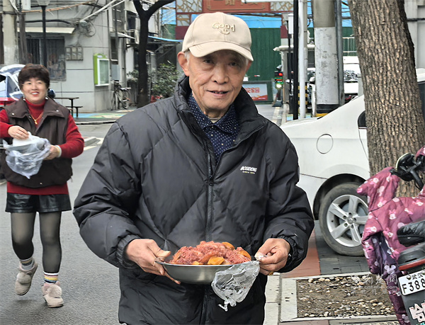 上午10時(shí),長桌上漸漸擺滿了四十余道菜品。李師傅做的紅燒魚寓意“年年有余”,黃師傅的八寶飯?zhí)鹣丬浥?,還有趙師傅拿手的包子,南北風(fēng)味交融。黃師傅感慨道,以前小區(qū)更像一個(gè)單純的居住場所,現(xiàn)在卻真正有了家園的模樣?!皩O子不會做的作業(yè),群里一問就有三、四個(gè)鄰居幫忙解答,這種踏實(shí)感,千金難買?!?/p>
