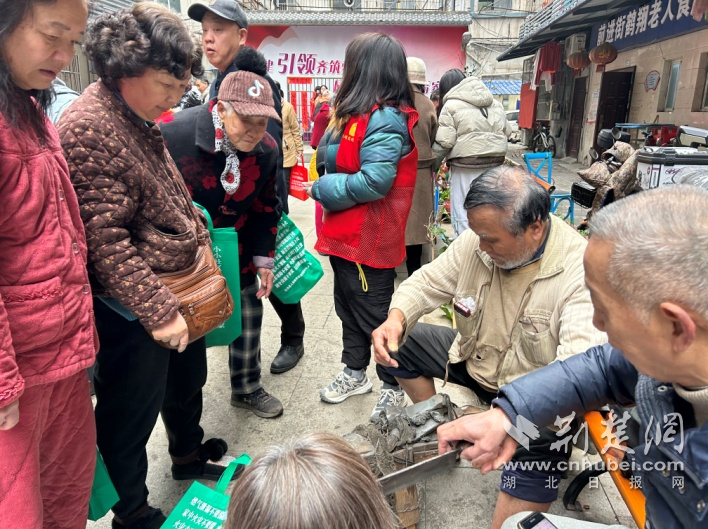 便民服務(wù)區(qū)人氣最旺。武商集團(tuán)世貿(mào)廣場帶來的專業(yè)皮具清理服務(wù),讓不少“老物件”煥然一新;理發(fā)、磨刀、洗鞋、洗鍋等攤位前,志愿者們動(dòng)作嫻熟、服務(wù)周到,幫居民解決生活中的“關(guān)鍵小事”。