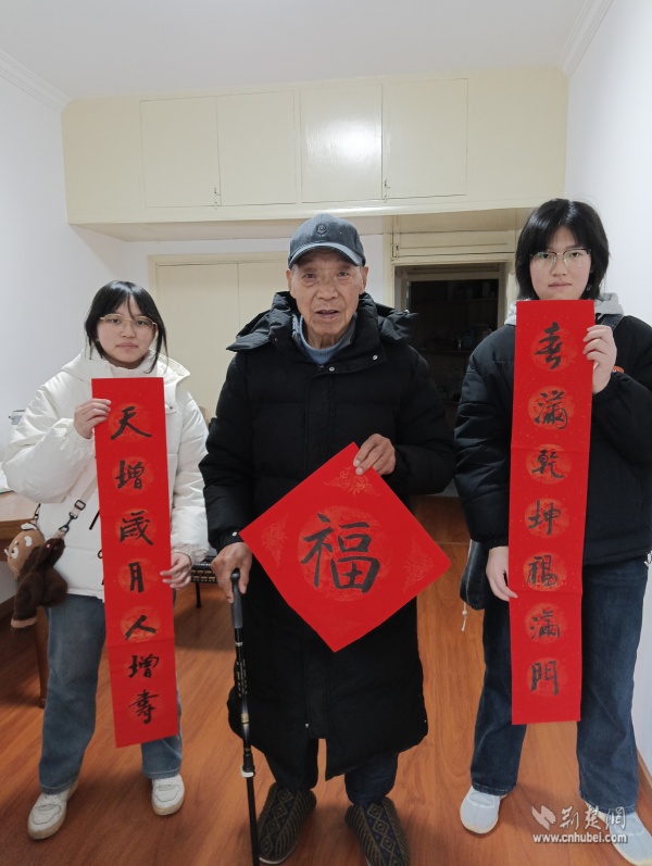 針對社區(qū)高齡、獨(dú)居老人,志愿者們開展“敲門行動”,走進(jìn)“鶴耋安”重點(diǎn)關(guān)愛對象家中。在88歲的李奶奶家門口,志愿者們將一副寫有“福壽安康”的春聯(lián)認(rèn)真貼好,紅紙金字映亮了老人的笑臉?!澳銈円粊?,家里就熱鬧了,這春聯(lián)比買的還暖心!”李奶奶說道。每到一戶,志愿者們都送上手寫春聯(lián)與“?!弊郑瑤兔ε挪樗婋[患,陪老人聊家常、憶往昔,用陪伴驅(qū)散冬日的冷清。