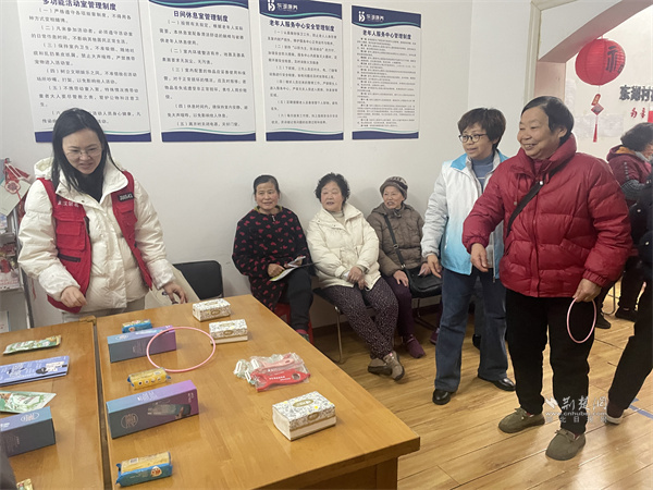 社區(qū)老年人服務(wù)中心張燈結(jié)彩,洋溢著節(jié)日的喜慶。趣味套圈區(qū)域人氣最旺,老人們凝神瞄準、輕拋套圈,每一次精準命中都引來陣陣掌聲與喝彩?!奥c拋,瞄準了再投!”一旁的老人互相鼓勁。游戲結(jié)束后,工作人員端上熱氣騰騰的元宵湯圓,老人們圍坐在一起,品湯圓、拉家常,一位阿姨捧著碗笑著說:“這湯圓甜到心里去了,社區(qū)年年都想著我們,太貼心了!”甜糯的滋味在舌尖化開,歡聲笑語在屋內(nèi)回蕩,象征著團圓美滿的節(jié)日氛圍愈發(fā)濃厚。