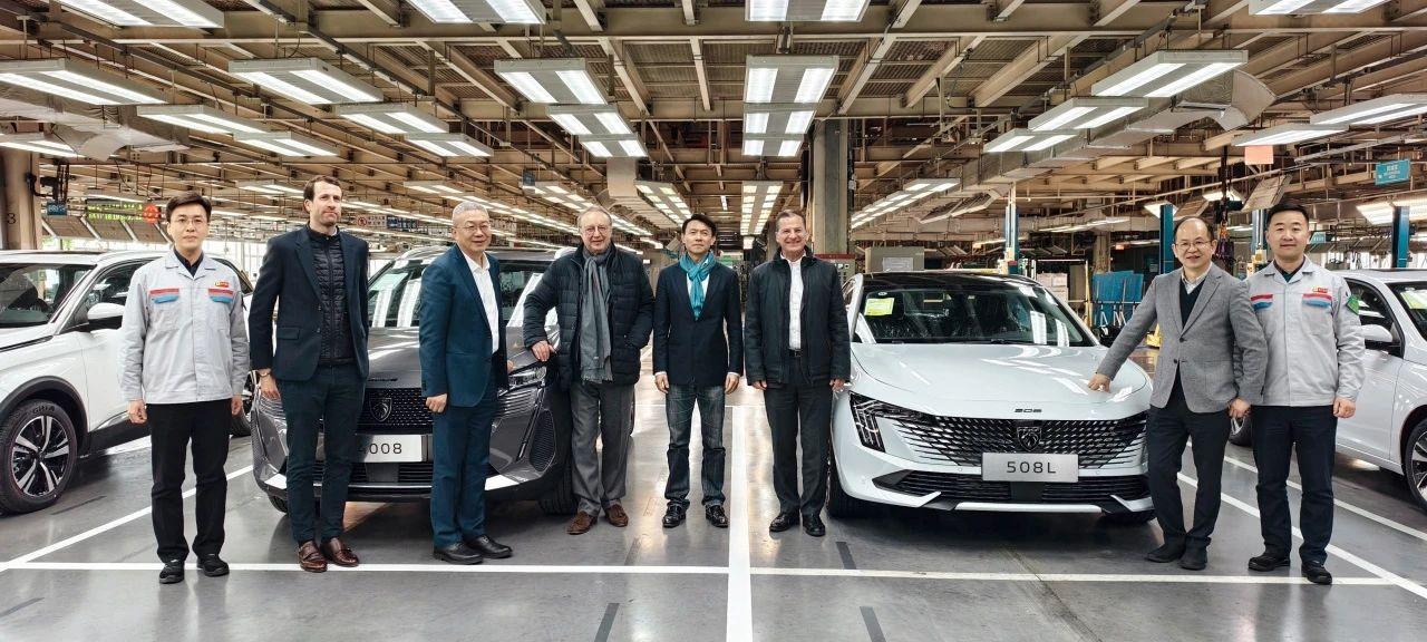 斯泰蘭蒂斯集團副董事長羅伯特?標致(左四)一行在神龍汽車調研。通訊員供圖