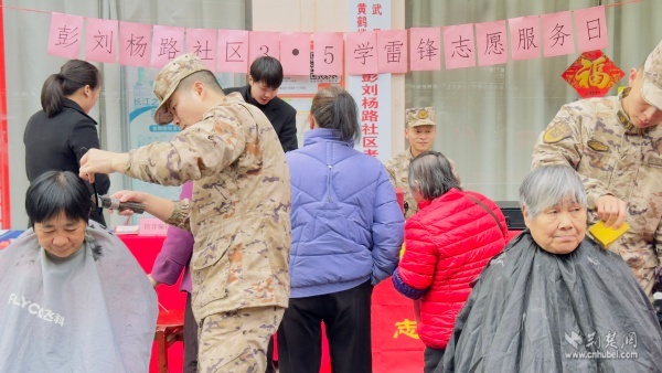 愛心義剪顯真情。在彭劉楊路社區(qū),武警武漢船艇大隊(duì)的戰(zhàn)士們開設(shè)“迷彩理發(fā)廳”,為高齡獨(dú)居老人精心修剪發(fā)型,剪刀翻飛間,老人們精神煥發(fā),臉上也洋溢著舒心的笑容。在西廠口社區(qū),東湖康養(yǎng)志愿者用一把剪刀傳遞關(guān)愛,活動(dòng)現(xiàn)場(chǎng)還有黃鶴樓街道社區(qū)教育學(xué)院學(xué)員們帶來的精彩文藝表演,更為便民集市增添了歡聲笑語,讓居民在享受服務(wù)的同時(shí),感受到濃濃的鄰里溫情。