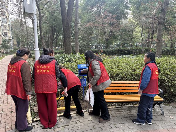 活動(dòng)現(xiàn)場(chǎng),全體人員齊聲合唱《學(xué)習(xí)雷鋒好榜樣》,激昂旋律點(diǎn)燃奉獻(xiàn)熱情。志愿者們分工協(xié)作、有序行動(dòng),一組擦拭樹木認(rèn)養(yǎng)牌、更換嶄新標(biāo)簽,為樹木明確“身份標(biāo)識(shí)”,增添護(hù)綠責(zé)任;另一組擦拭公共休閑椅、科普設(shè)施及兒童游樂設(shè)施,讓公共空間潔凈如新。