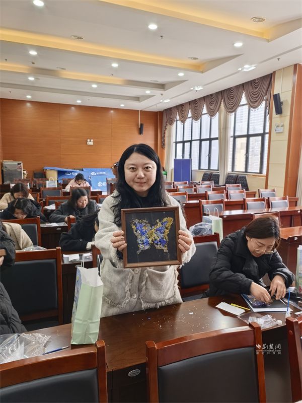 螺鈿手工擺件制作環(huán)節(jié),專業(yè)老師講解了螺鈿工藝的千年歷史與制作技巧,演示了底座處理、螺鈿粘貼、細節(jié)修飾全流程。女職工們領(lǐng)取專屬物料包,發(fā)揮創(chuàng)意搭配色彩、設計造型,工作人員全程提供協(xié)助。創(chuàng)作完成后,大家紛紛展示成品、分享心得,在動手實踐中感受非遺魅力,收獲滿滿成就感。