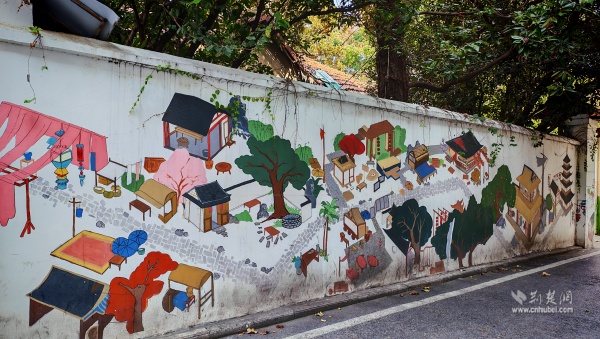社區(qū)黨委以文化為著力點(diǎn),以“微改造、精提升”為路徑,探索打造古今交融、文旅共生的“宜游”社區(qū)。從九龍井正街到先賢街,藏在居民樓中、電線桿上的明楚王府文化彩繪與武昌古城元素相得益彰,地名文化墻以漫畫形式述說老街往事,生動展示社區(qū)文化遺存和老街古巷歷史。各色花卉綠植與武漢主題創(chuàng)意打卡裝置珠玉其間,形成“幾步一景”的游覽體驗(yàn)。