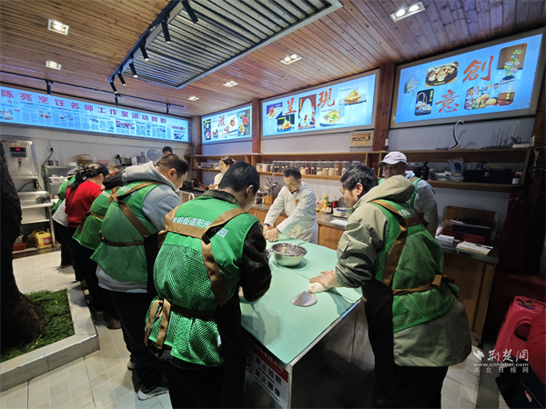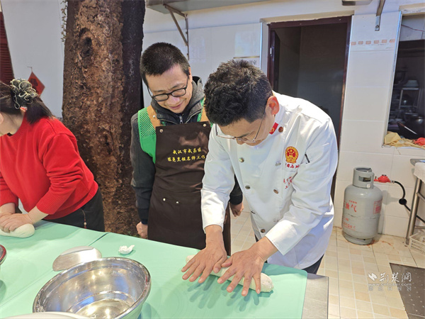 面點(diǎn)老師手把手指導(dǎo)演示揉面細(xì)節(jié)。 通訊員供圖